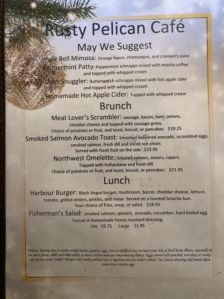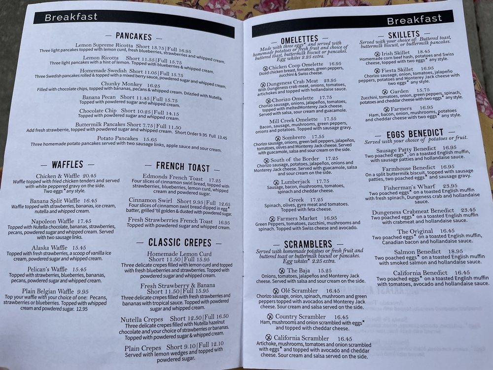 - Lunch Selections: Enjoy a fresh Harvest Cobb Salad or a rich Seafood Caesar, featuring local Dungeness crab and shrimp, perfect for a midday meal.